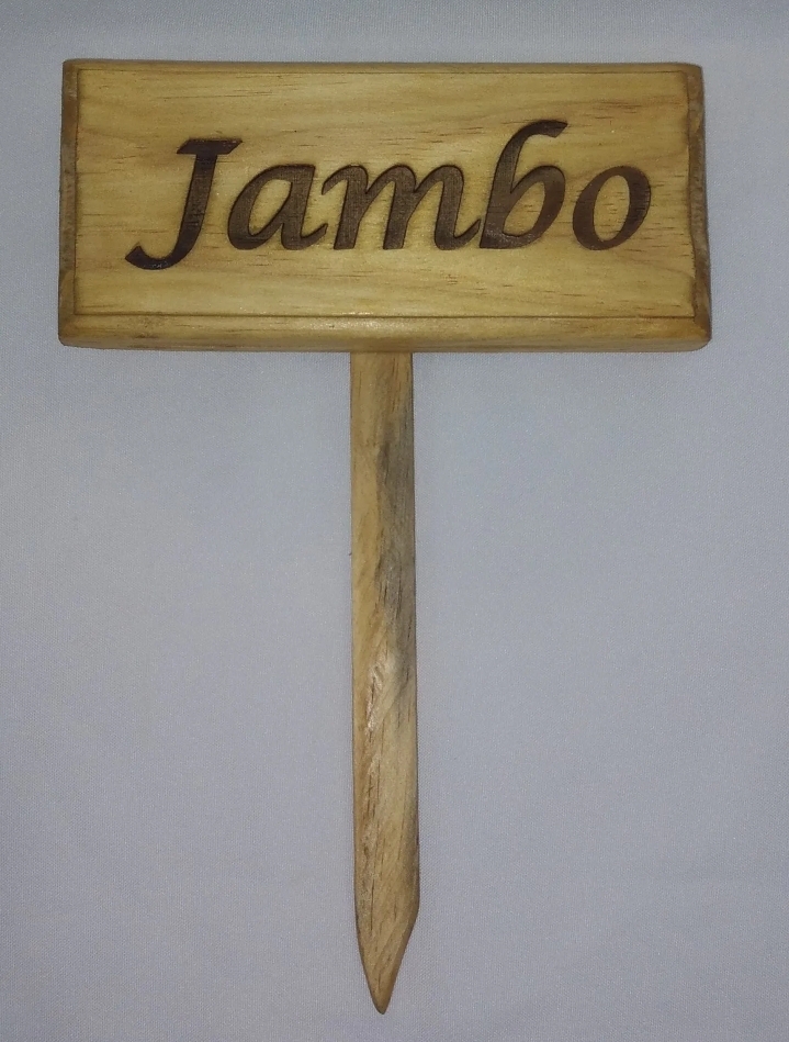 Placa personalizada pirografada em estilo rústico envernizada no tamanho 30cm por 90cm mais estaca
